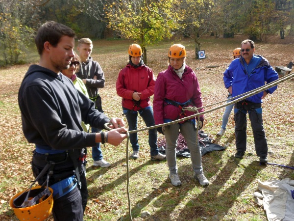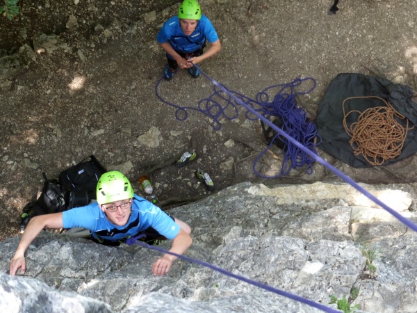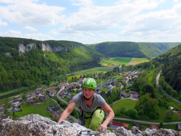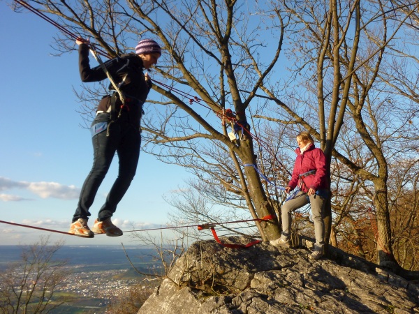 Auf der Alb, im Donautal oder im Schwarzwald bieten wir Tagesausflüge zu eindrucksvollen Felsen an, an denen auch im Klettern Unerfahrene das Felsklettern wagen dürfen und Gipfel ersteigen. Das gegenseitige Sichern, natürlich in einem von uns entsprechend angeleitetem Rahmen, gehört dazu. Die zentralen Elemente Vertrauen und Mut werden dabei sprichwörtlich greifbar, wie auch beim Abseilen oder wenn wir zusammen eine Seilbrücke über dem Abgrund aufbauen.