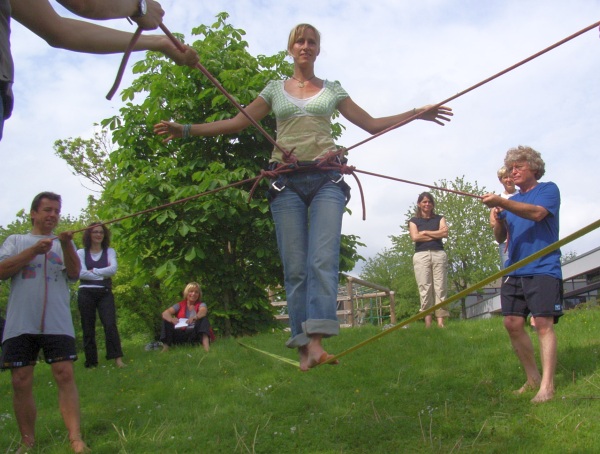 Bewegungsaction mit Nervenkitzel, Mut und Überwindung in einem Parcours aus Boulderblöcken und Klettersteigwegen, mit einem Slacklineaufbau und einer Sprunganlage… Ein Tag mit kleinen Grenzerlebnissen und wachsendem Selbstvertrauen!