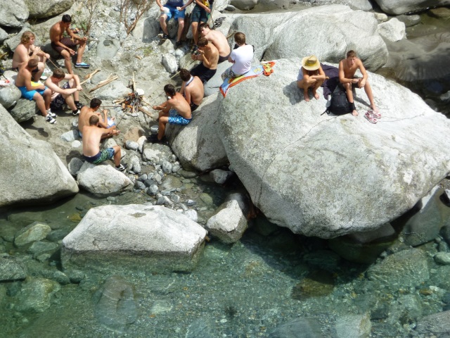 Unser Camp liegt in Avegno am Taleingang des Valle Maggia - ein Zeltplatz direkt am Fluss, umgeben von einer einzigartigen Landschaft aus Stränden, Felsblöcken, Badepools und Wasserfällen, die jeden Tag entdeckt werden wollen. Das Programm besteht aus Badezeit und Entdeckungstouren am und im Wasser. Die vielen sonnigen Kletterfelsen der Umgebung sind für Gruppen und Kletteranfänger sehr gut geeignet. Die Schüler lernen hier in entspannter Atmosphäre sich gegenseitig zu sichern und je nach Können und Mut kleine Tages(kletter)ziele zu erreichen.