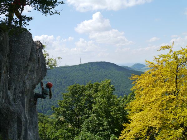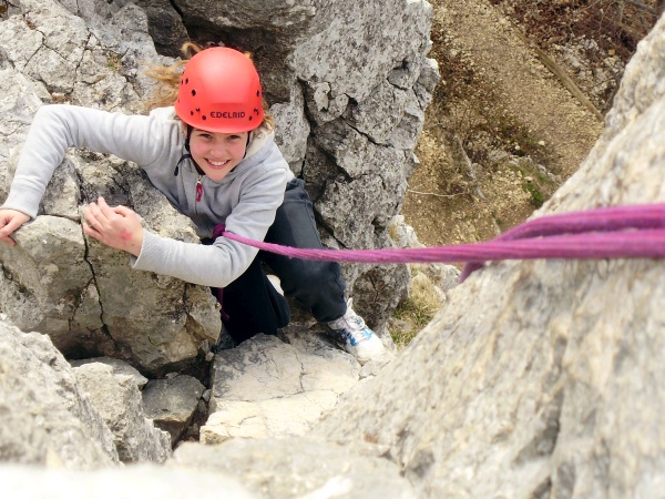 Beim Felsklettern erhalten die Teilnehmer eine Einführung in die Kletter- und Sicherungstechnik und lernen sich unter Anleitung gegenseitig zu sichern. In kleinen Teams kann gleichzeitig an unterschiedlich schweren Top Rope Routen geklettert werden.