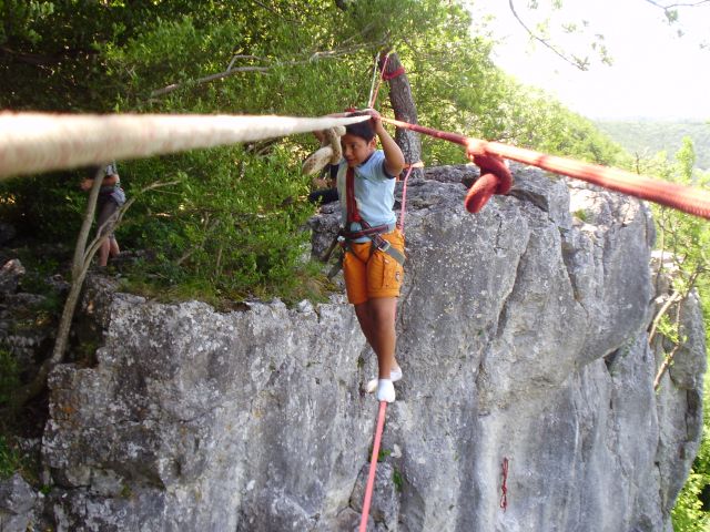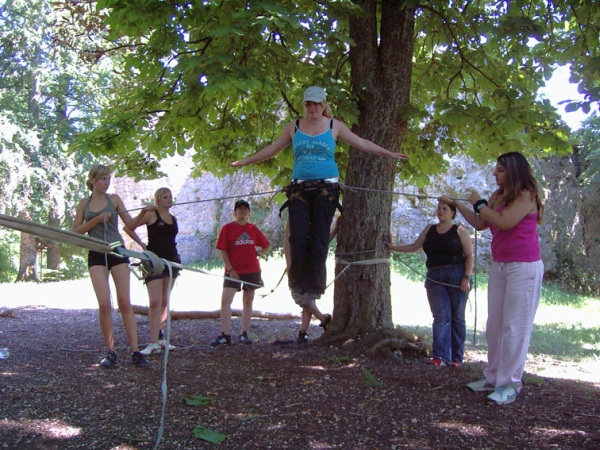 Die Seilabenteuerstationen werden von uns in unmittelbarer Nähe zu den Felsen aufgebaut. Wir gestalten mit der Gruppe spannende Interaktionsspiele mit Seilen, wie Seilbrücken- und Balanceelemente zwischen Bäumen, Abseilen und Teamaktionen. Diese Abenteuerstationen fordern heraus, erfordern Mut und Konzentration von jedem Einzelnen und eine gute Zusammenarbeit aller Teilnehmer.