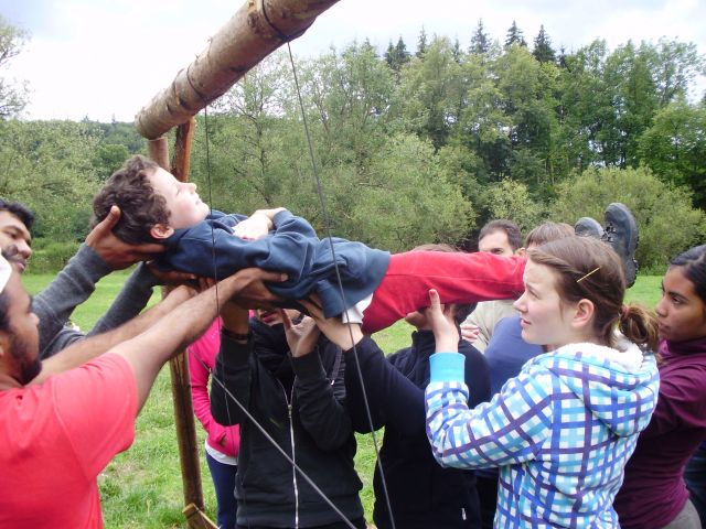 Direkt an der Bushaltestelle und doch schon mitten im Wald, starten wir unseren Tag mit erlebnispädagogischen Aufgaben und nicht alltäglichen Herausforderungen. Angepasst an die Gruppengröße und Altersstufe, stellen wir eine individuelle Auswahl an Aufgabenstationen zusammen, wie z. B. das verflixte Spinnennetz, den hohen Teamaufzug, das spannende Abseilen und viele andere mehr.